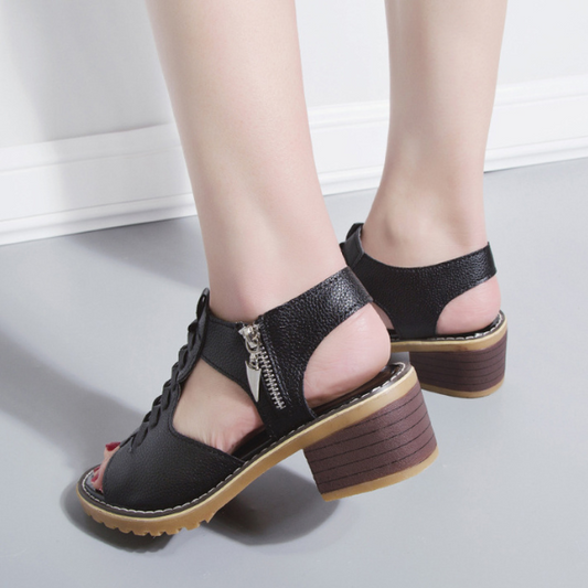 Moteriškos ortopedinės basutės su kulnu ir užtrauktuku šone
