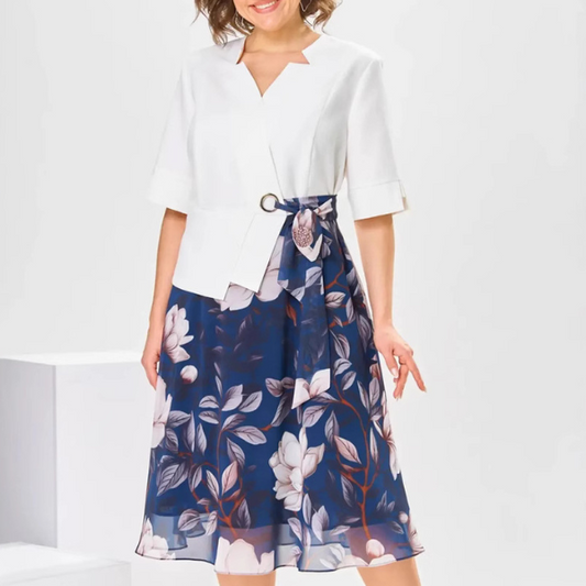 Dviejų dalių maudymosi kostiumėlis - suknelė su gėlėtu raštu
