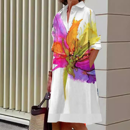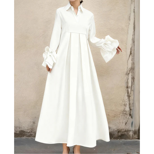 Elegantiška ilga marškinių tipo suknelė su pūstais rankogaliais