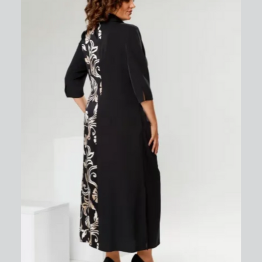 Elegantiška laisvo kirpimo suknelė su blizgiomis detalėmis