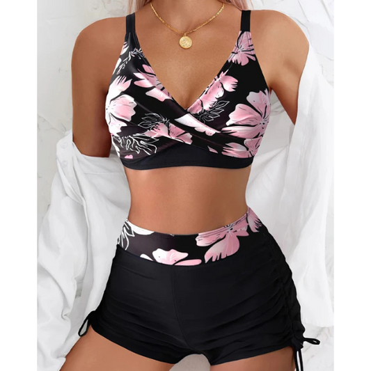 Spalvingas ir figūrą pabrėžiantis dviejų dalių maudymosi kostiumėlis