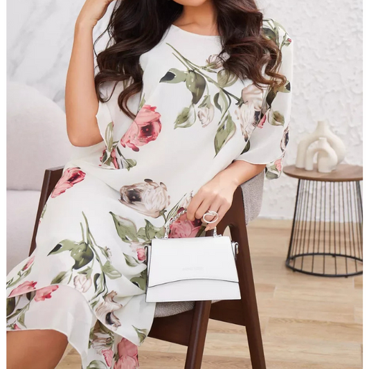 IšpardavimasElegantiška moteriška šifono suknelė su gėlių raštu