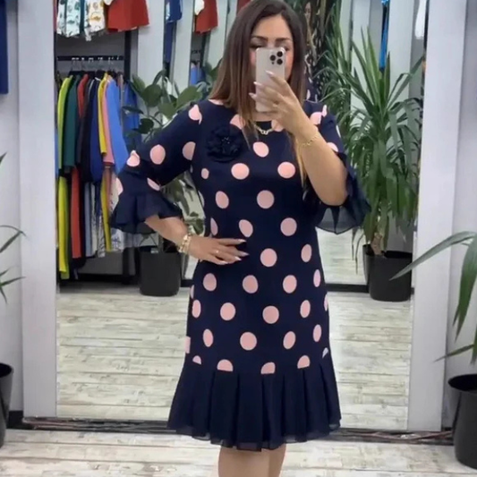 IšpardavimasKlostuota suknelė su taškuotais raštais
