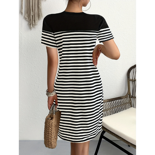 Kasdieninio stiliaus dryžuota suknelė su širdelės dekoru