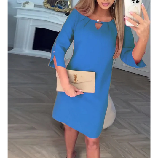 IšpardavimasElegantiška vienspalvė suknelė trumpomis rankovėmis