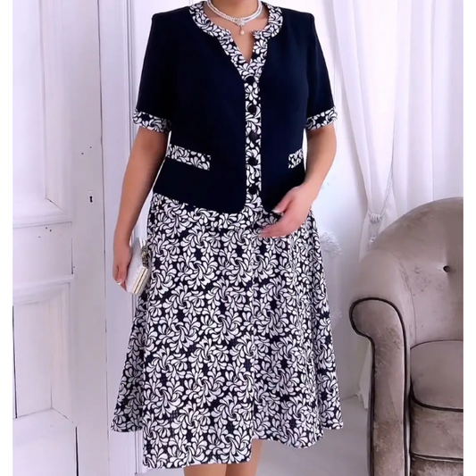 Klasikinis dviejų dalių moteriškas komplektas su lūpų spauda