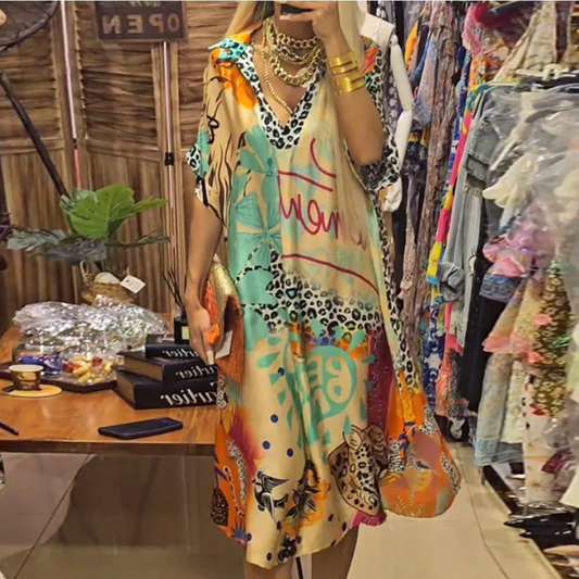 IšpardavimasStilinga spalvota suknelė su leopardo raštais