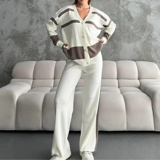 Megztas laisvalaikio kostiumėlis su kelnėmis ir megztuku