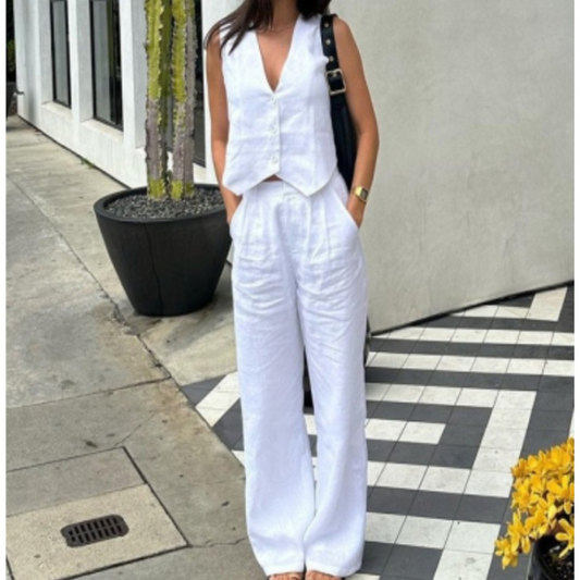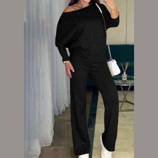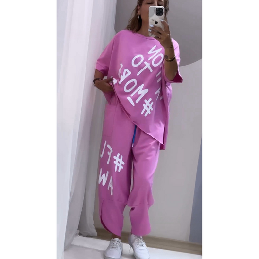 Dviejų dalių laisvalaikio komplektas su asimetriška palaidine ir kelnėmis