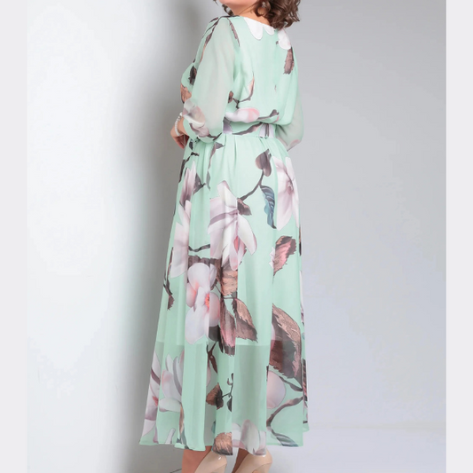 Elegantiška aukštos kokybės ilga laisvo kritimo gėlėta suknelė