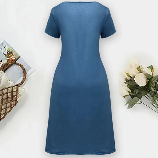 IšpardavimasDžinsinė kasdienė suknelė su trumpomis rankovėmis