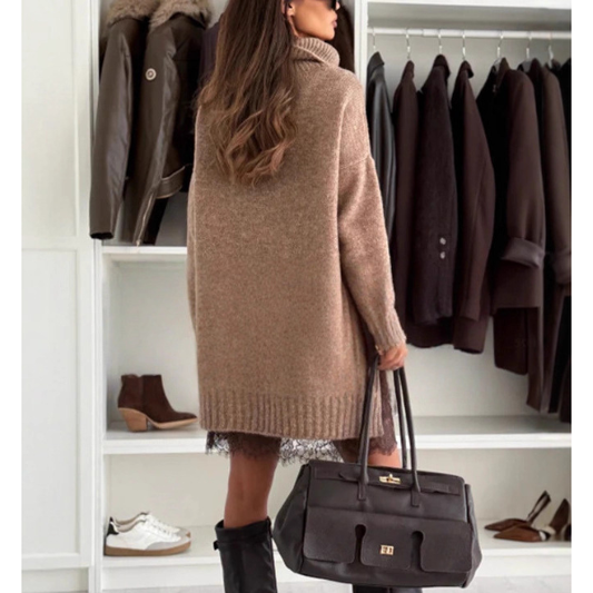 Dviejų dalių megztinio ir suknelės komplektas su nėriniais