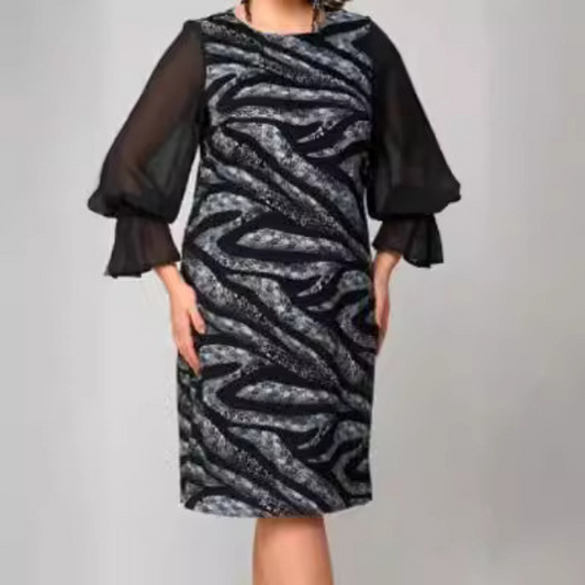 Elegantiška laisvo kirpimo suknelė su blizgiomis detalėmis