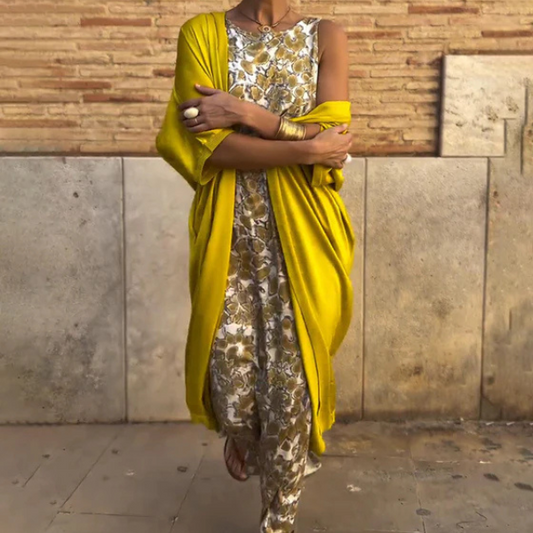 Elegantiškas dviejų dalių kostiumėlis su vintažiniu raštu