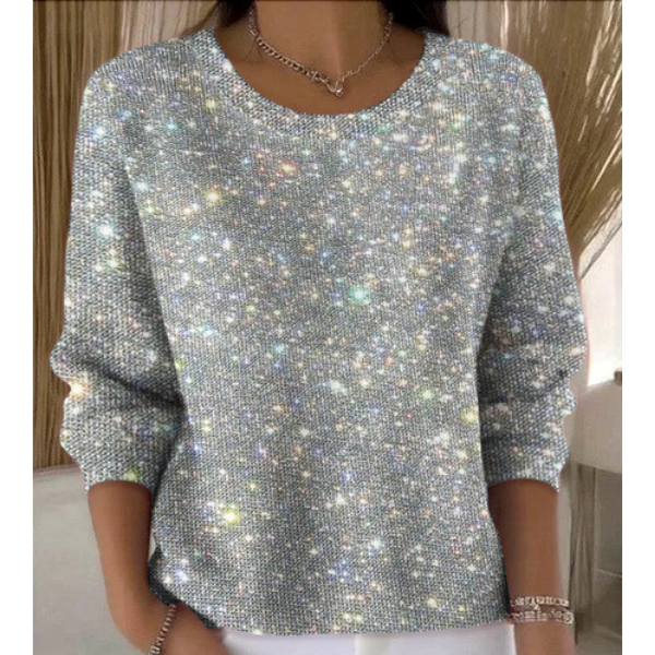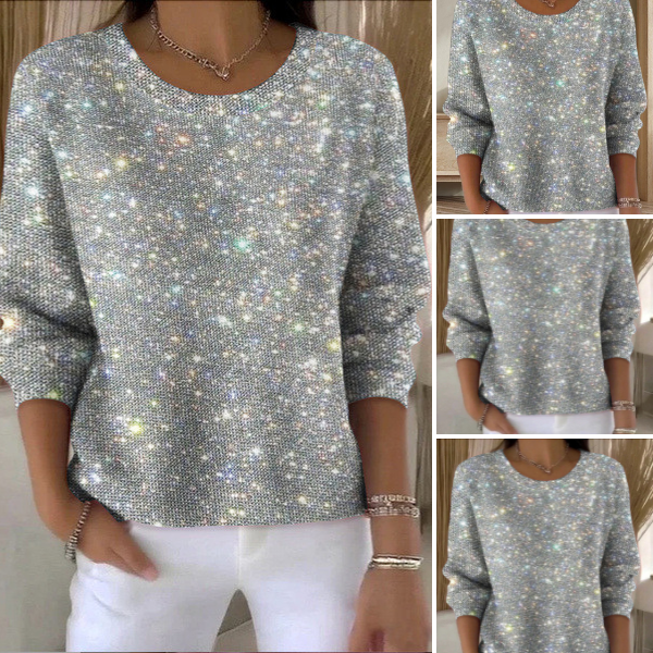 Blizgus laisvalaikio megztinis su apvalia iškirpte