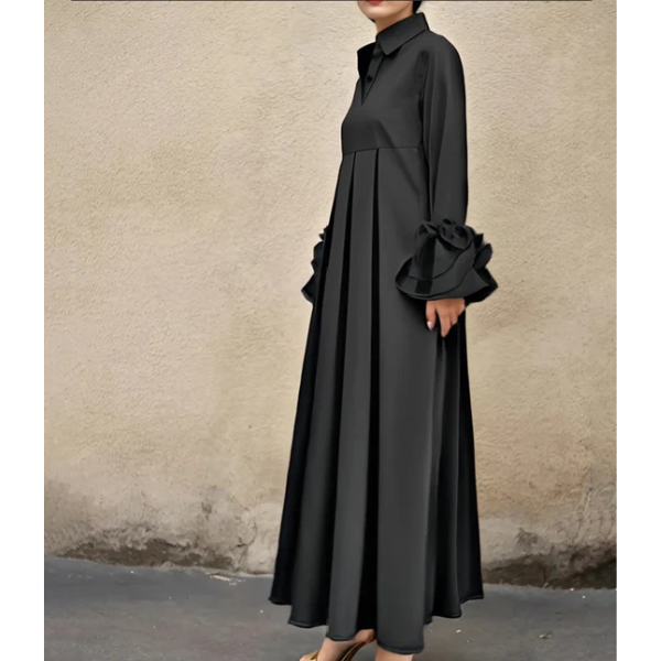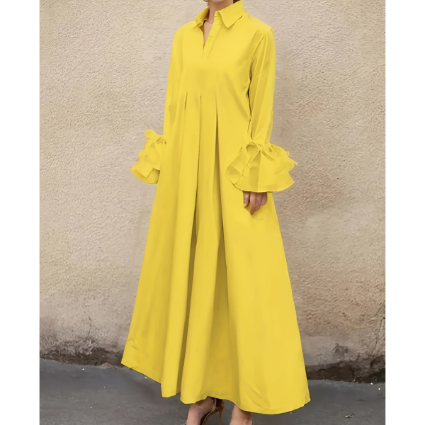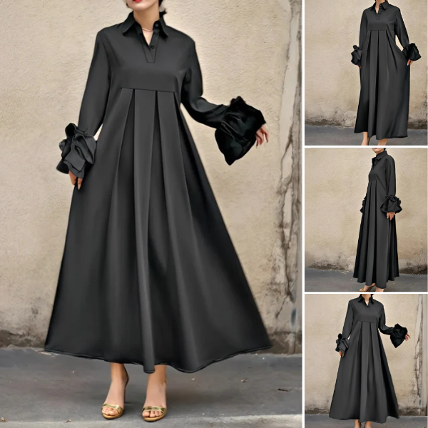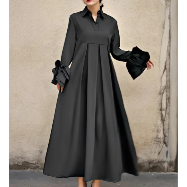 Elegantiška ilga marškinių tipo suknelė su pūstais rankogaliais