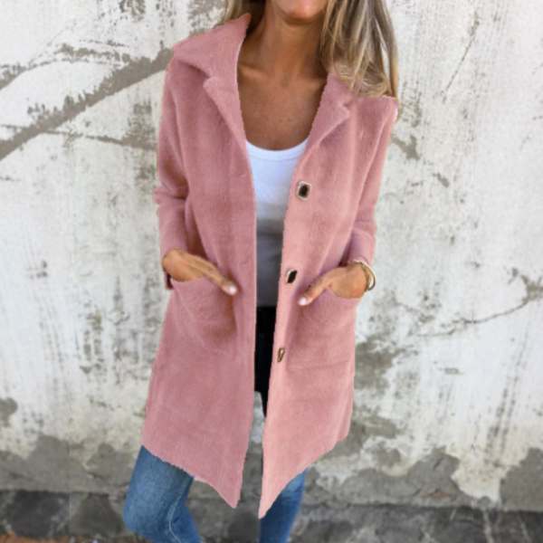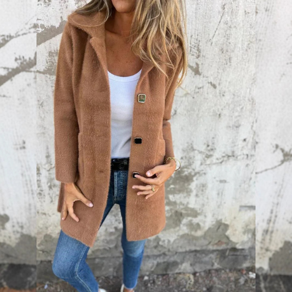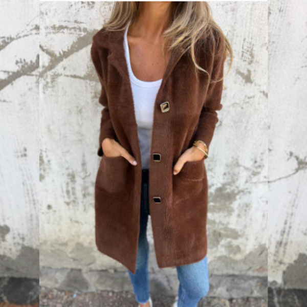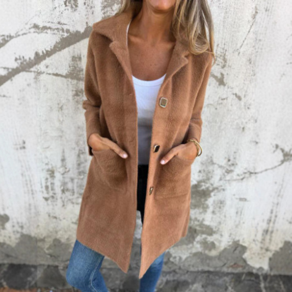 Vienaeilis užsegimas – minimalistinis sprendimas, kuris išlaiko švarias linijas ir suteikia paltui rafinuotą bei tvarkingą įvaizdį.