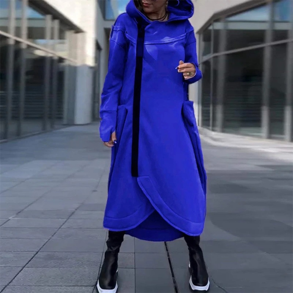 Megztinio tipo moteriška ilga suknelė su kapišonu