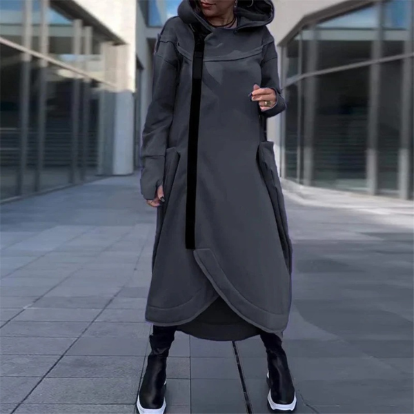Rudens sezono būtinybė – suknelė sukurta taip, kad apsaugotų nuo vėsesnio oro, tuo pačiu išlaikant stilingą įvaizdį.