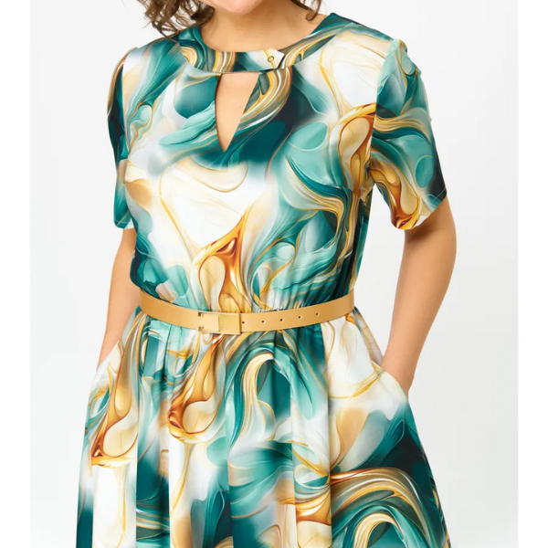 Tobula vasarai – spalvingas raštas ir laisva forma leis tau spindėti visur, kur tik eisite.