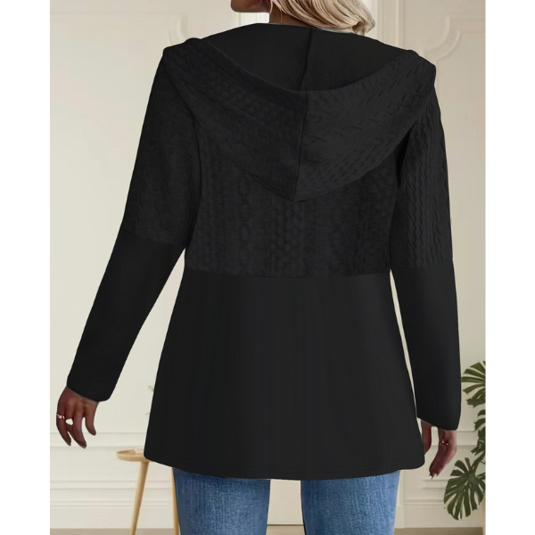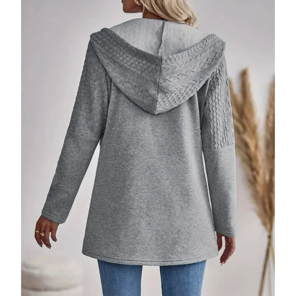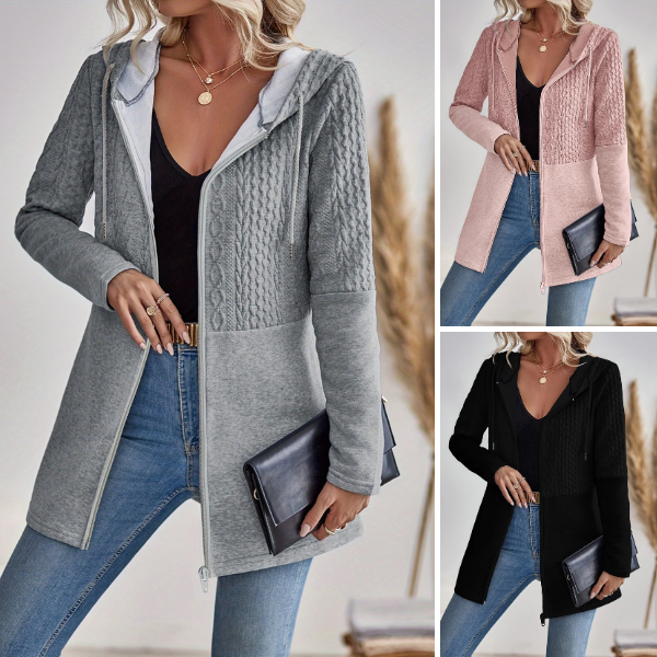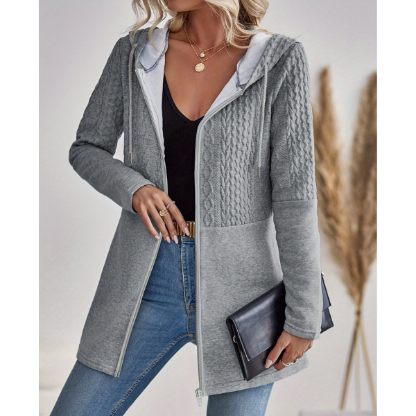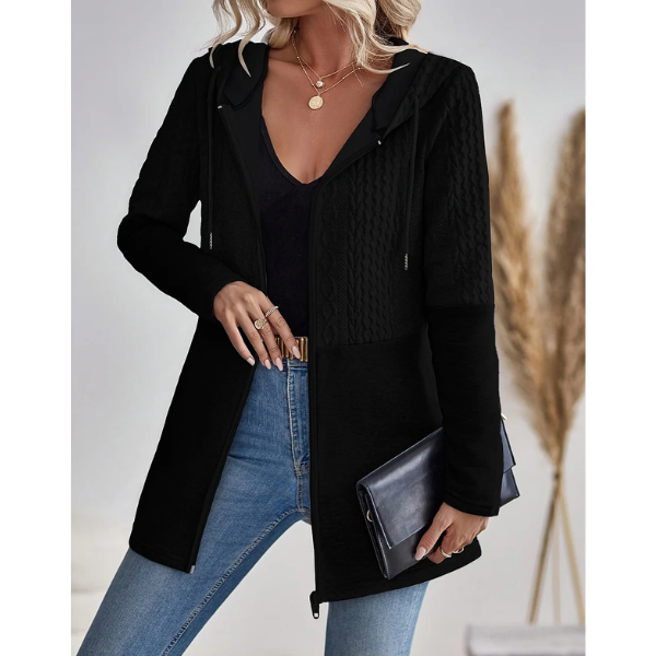 Šiuolaikiškas dizainas – šis moteriškas džemperis su užtrauktuku ir kapišonu sujungia laisvalaikio stilių su elegantiškomis detalėmis, sukuriant išskirtinį įvaizdį, tinkantį tiek miestui, tiek poilsiui.