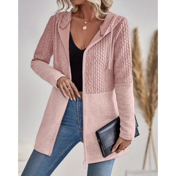Stilingas moteriškas megztinis su kapišonu ir užtrauktuku
