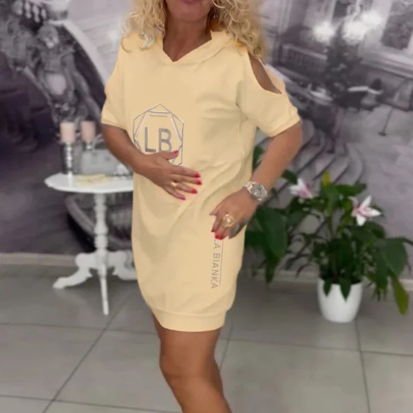 👗 STILINGA SUKNELĖ SU KAPUCIU IR RAIDĖMIS 👗